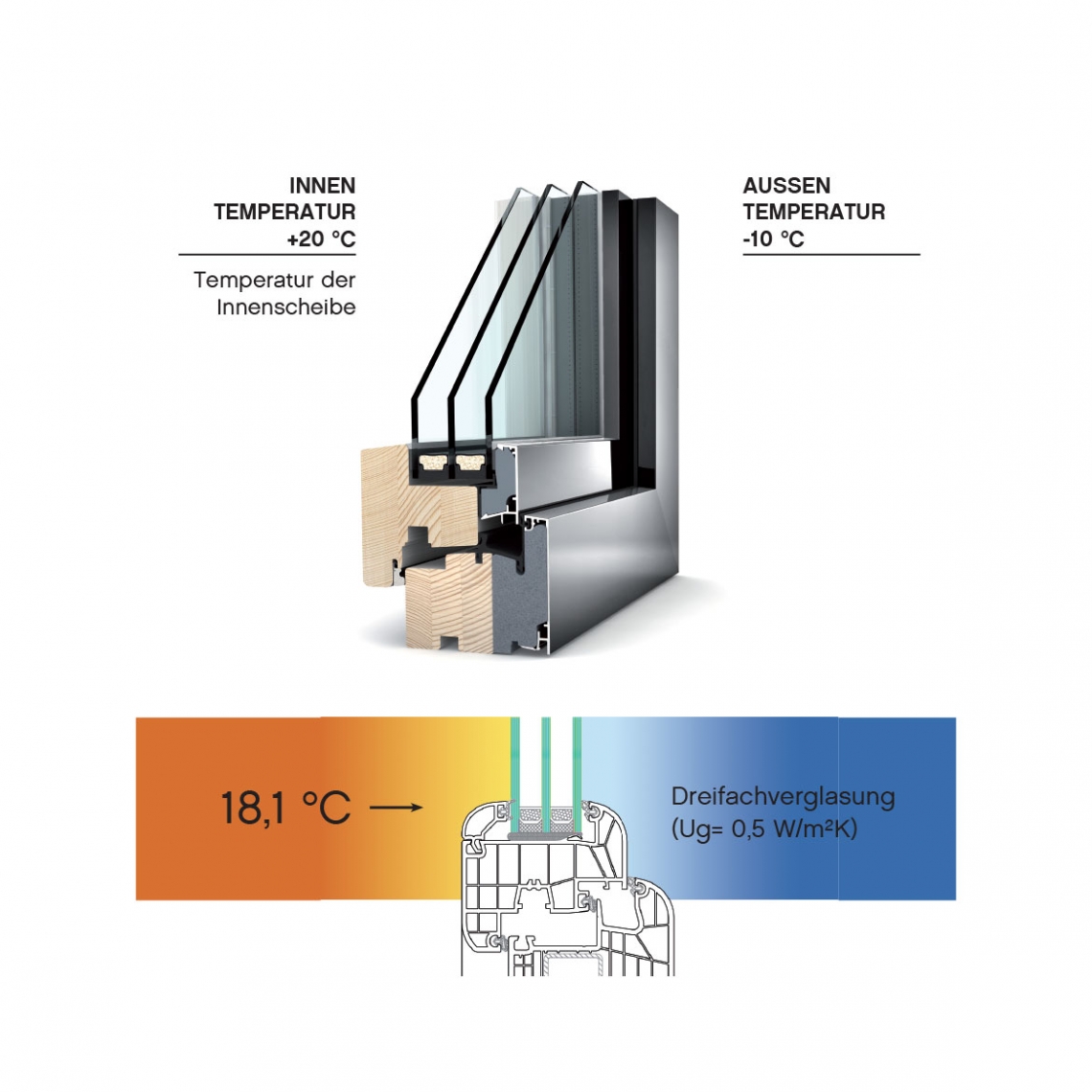 Großen Einfluß auf das gute Wohngefühl hat auch die Wärme-Abstrahlung der Wände. Wenn wir zwischen Wänden mit verschiedenen Temperaturen stehen, fühlen wir den Unterschied – das nennen wir Strahlungsasymmetrie. Bei einem Temperaturunterschied von mehr als 5 °C fühlen wir uns nicht wohl – eine Unbehagen, das längerfristig auch gesundheitliche Probleme verursachen kann. Alle von uns verwendete Fenster werden luftdicht normgerecht eingebaut- das ist die Garantie für minimale Wärmeverluste.