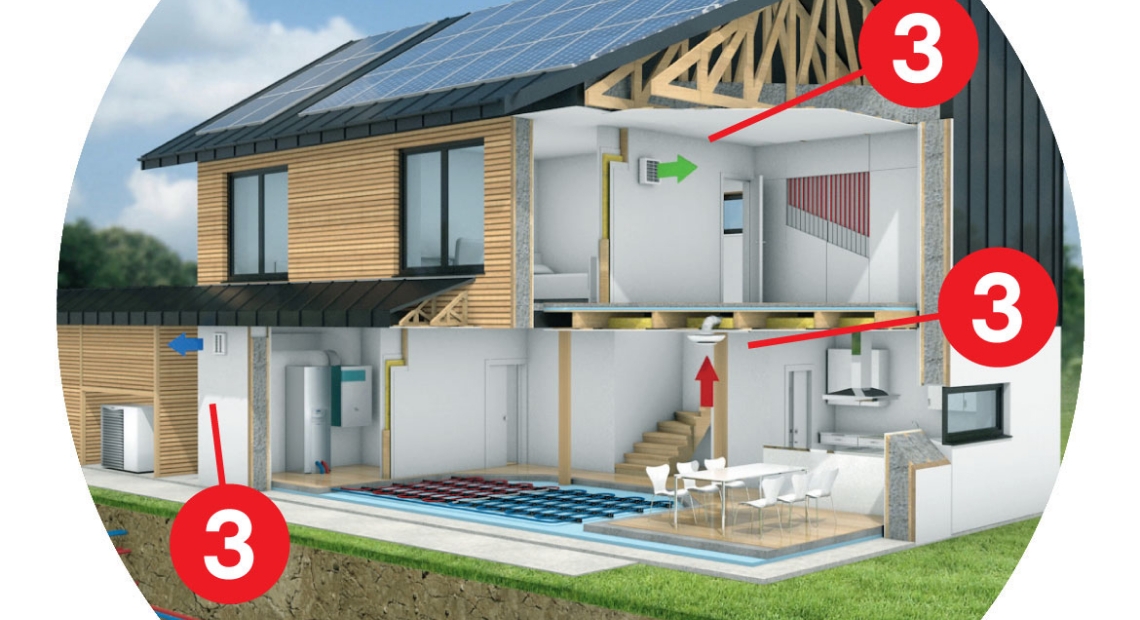 Das Belüftungssystem mit Wärmerückgewinnung, das wir bei Lumar standardmäßig in all unsere Häuser einbauen können, ist für das Erreichen der Energieeffizienz eines Niedrigstenergie-Gebäudes fast zwingend nötig. Mit einer ausgezeichneten Gebäudehülle und der entsprechenden Luftdichtigkeit minimieren wir die Wärmeund Lüftungsverluste. Zur Gewährleistung der entsprechenden Luftqualität im Raum müssten die Raume allerdings regelmäßig durchlüftet werden, was speziell im Winter zu großen Wärmeverlusten führen würde. Mit dem Einbau einer kontrollierten Wohnraumlüftung mit Wärmerückgewinnung sorgen wir für ständige Zufuhr an frischer und vorgewärmter Luft, ohne die Fenster öffnen zu müssen – kein Verlust an Wärme und Energie. Die Anlage erfasst die frische Luft aus der Umgebung und führt sie über die Reinigungsfilter zum Wärmetauscher, wo sie mit der Wärme der Abluft vorgewärmt wird. Diese wird aus Räumen wie Küche oder Bad abgesaugt. Die gekühlte verbrauchte Luft wird aus dem Haus abgeleitet und die vorgewärmte frische Luft durch Rohrleitungen lautlos in die Räume zugeführt. Bei Lumar setzen wir auf bewährte, lautlose und energieeffiziente Belüftungssysteme, um auch auf diesem Level ein hohes Niveau an Wohnkomfort zu bieten.