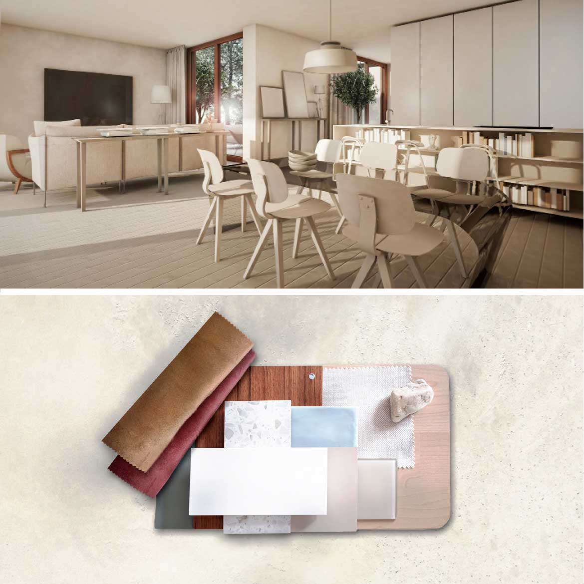 Das Haus Lita drückt durch seine Materialien, seine schlichten Formen und durchdachten Details eine Art “warmen Minimalismus” aus. Das äußere Erscheinungsbild passt sich durch die Verwendung von Holz, den rustikal verarbeiteten Putz zusammen mit Glas und einer Dachdeckung aus Aluminium an die Umgebung an. Das Innere des Hauses ist ruhig und neutral dargestellt, weil wir uns wünschen, dass jeder sein Zuhause nach eigenem Maß mitgestaltet.