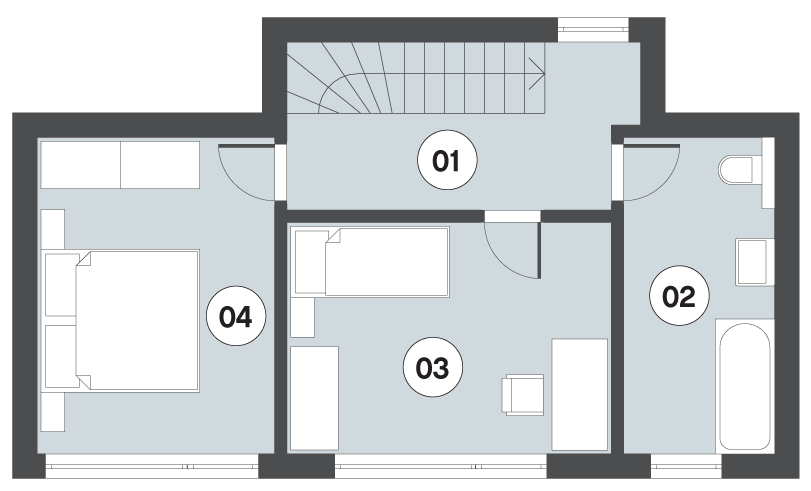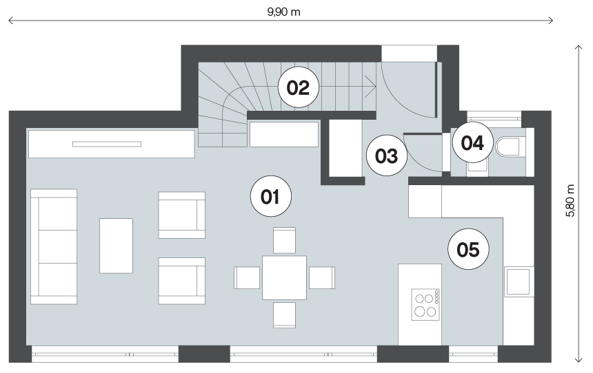 | 01 | Wohnzimmer mit Esszimmer | 25,54 m2 |