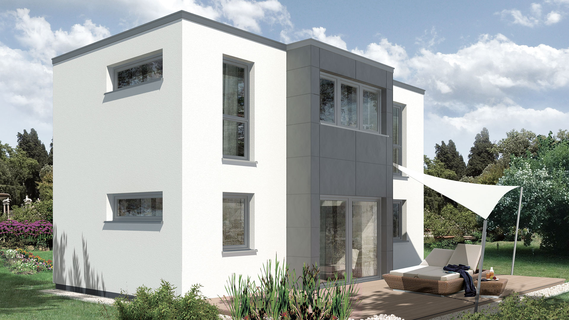 Die Grundrisse und Ansichten dienen der planlichen Darstellung. Leistungsumfang und Ausführung erfolgen ausschließlich gemäß der Bau- und Lieferbeschreibung bzw. des Anbots. Die Abbildungen zeigen Häuser mit Sonderausstattung, die im Grundpreis nicht enthalten sind.