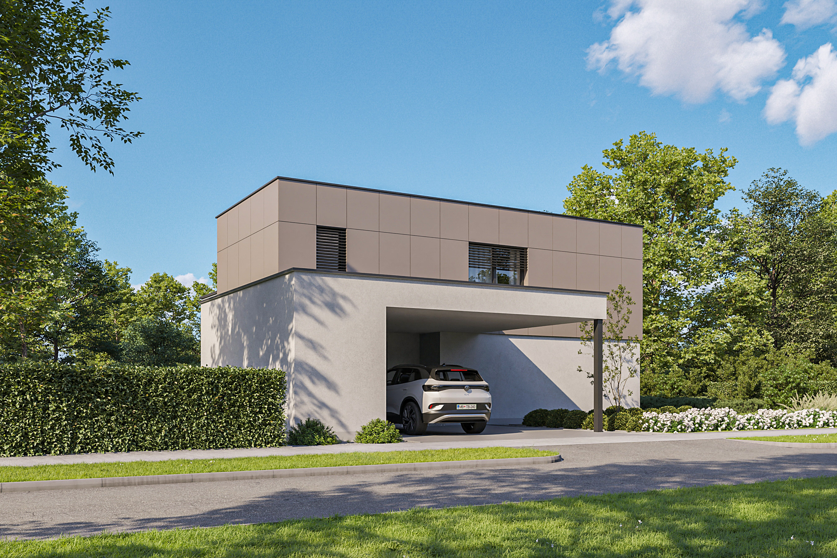 Das Haus ist für junge Familien mit besonderen architektonischen Anforderungen konzipiert. Es zeichnet sich durch seine einfachen Linien und gleichzeitig auch durch seine dynamische und funktionale Struktur aus.