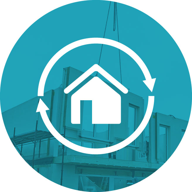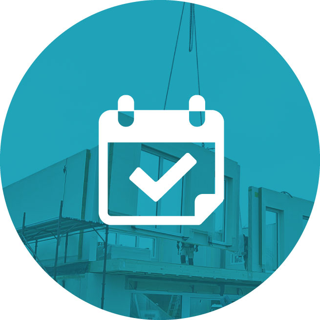 Da mit »nassen Materialien« gearbeitet wird, muss bei einzelnen Phasen der konventionellen Bauweise gewartet werden, bis alle Materialien ausgetrocknet sind. Infolgedessen kann es eins bis zwei Jahre dauern, bis Sie das Haus beziehen können. Dieser Zeitraum kann sich jedoch wegen anderer Arbeiten Ihres beauftragten Unternehmens, aufgrund von Schlechtwetter und anderer unvorhersehbarer Faktoren verlängern.