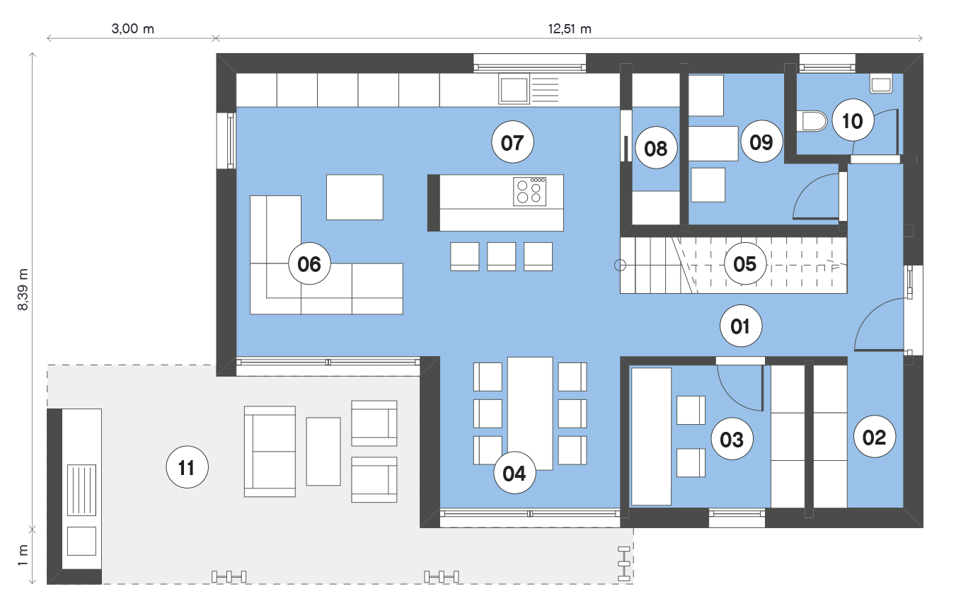 | 11 | Überdachte Terrasse (Option) | 27,16 m2 |