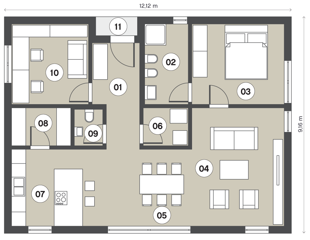 | 10 | Arbeitszimmer | 11,05 m2 |