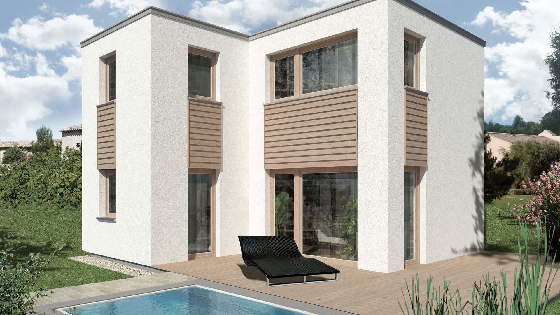 Die Grundrisse und Ansichten dienen der planlichen Darstellung. Leistungsumfang und Ausführung erfolgen ausschließlich gemäß der Bau- und Lieferbeschreibung bzw. des Anbots. Die Abbildungen zeigen Häuser mit Sonderausstattung, die im Grundpreis nicht enthalten sind.