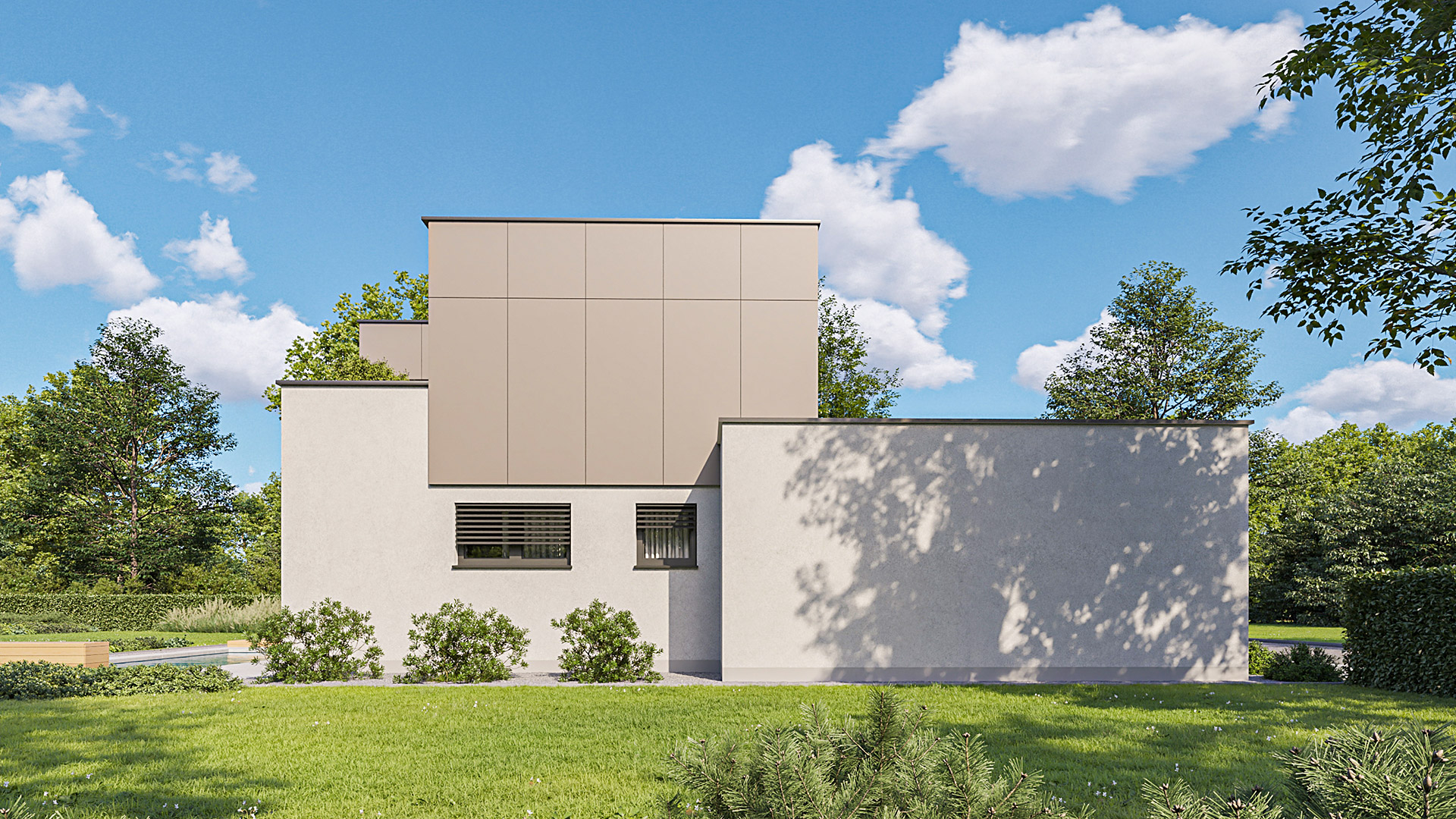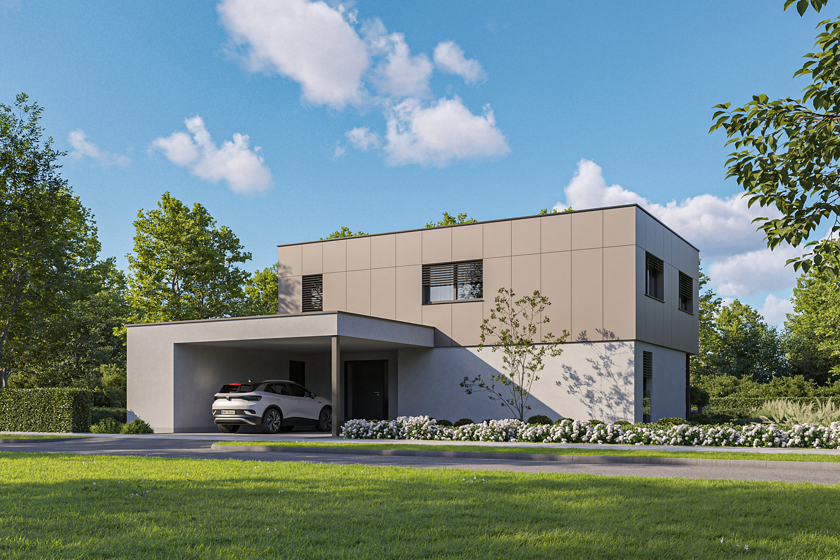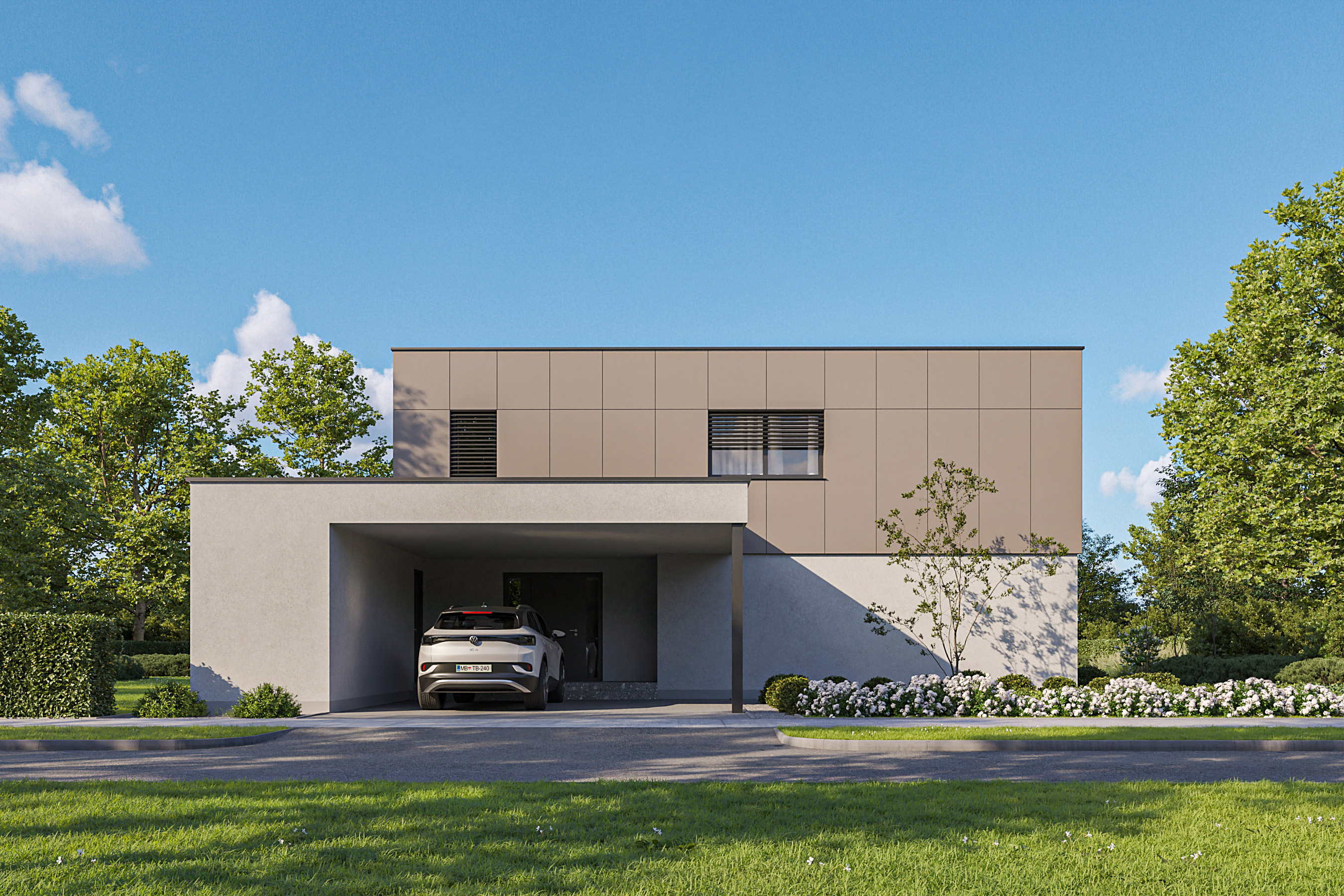 Das Haus ist für junge Familien mit besonderen architektonischen Anforderungen konzipiert. Es zeichnet sich durch seine einfachen Linien und gleichzeitig auch durch seine dynamische und funktionale Struktur aus.