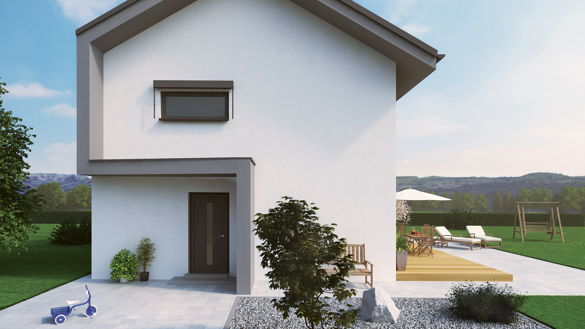 Das Satteldach erzeugt mit den zwei geneigten Dachflächen ein gemütliches und romantisches Ambiente im Hausinneren.
